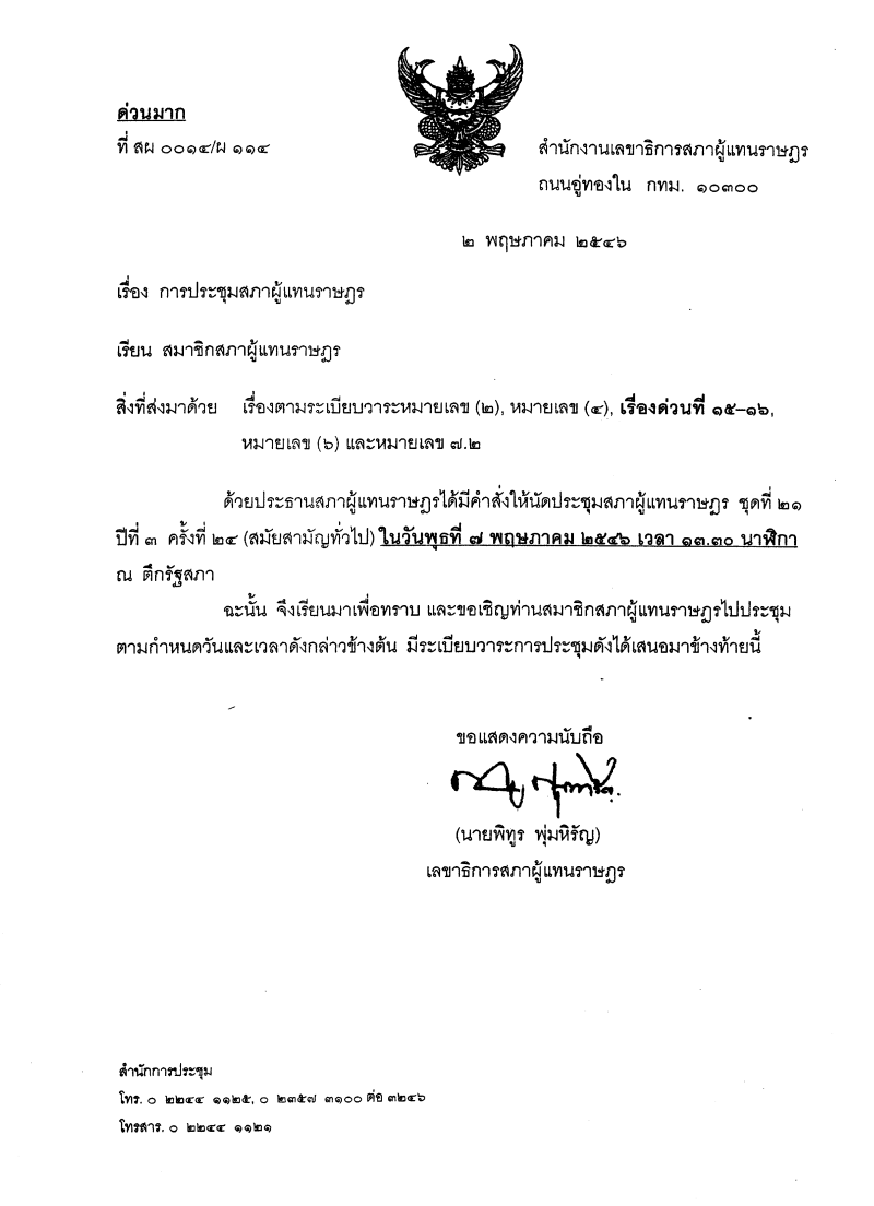 ชื่อเอกสาร : ระเบียบวาระการประชุมสภาผู้แทนราษฎร ชุดที่ 21 ปีที่ 3 ครั้งที่ 24 (สมัยสามัญทั่วไป) วันพุธที่ 7 พฤษภาคม 2546
