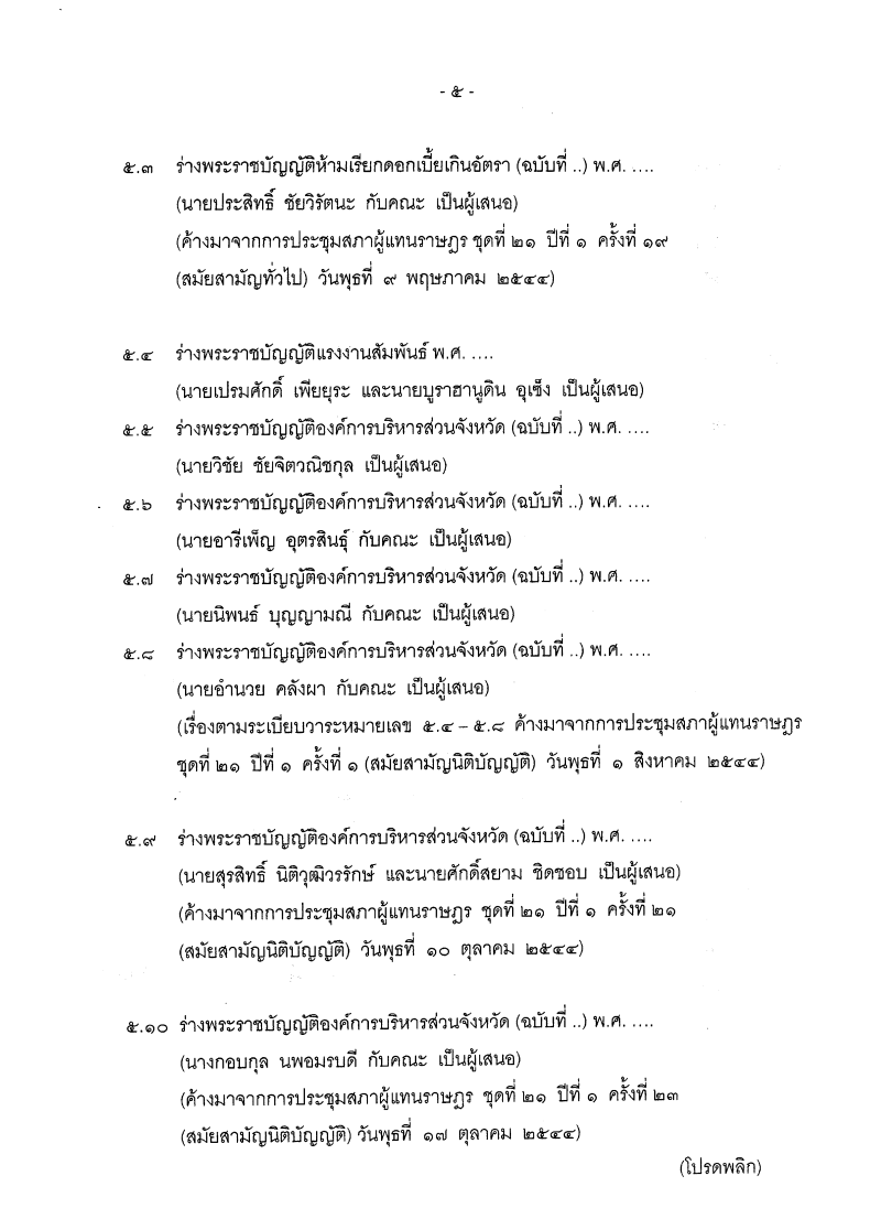 • ระเบียบวาระการประชุมสภาผู้แทนราษฎร ชุดที่ 21 ปีที่ 3 ครั้งที่ 24 (สมัยสามัญทั่วไป) วันพุธที่ 7 พฤษภาคม 2546