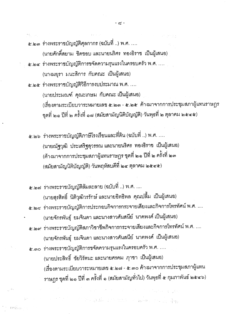 • ระเบียบวาระการประชุมสภาผู้แทนราษฎร ชุดที่ 21 ปีที่ 3 ครั้งที่ 24 (สมัยสามัญทั่วไป) วันพุธที่ 7 พฤษภาคม 2546