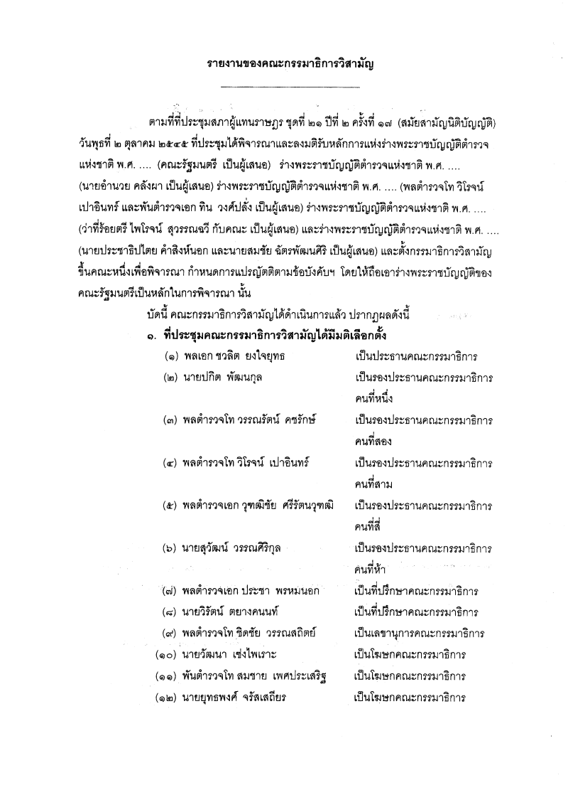 ร่างพระราชบัญญัติตำรวจแห่งชาติ พ.ศ..... ซึ่งคณะกรรมาธิการวิสามัญพิจารณาเสร็จแล้ว