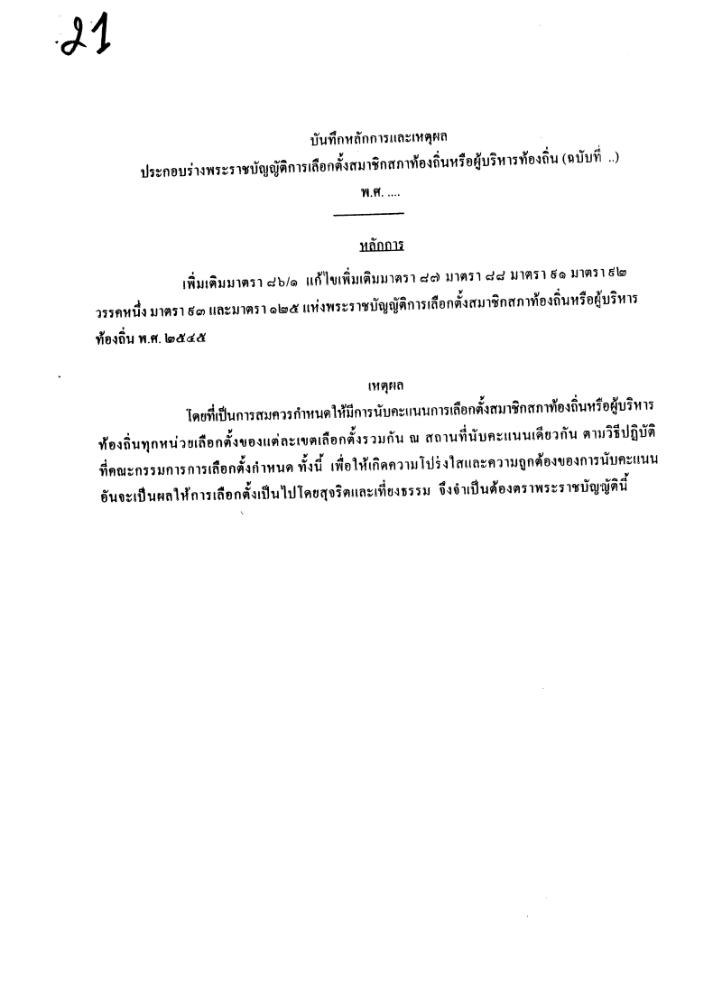 • ร่างพระราชบัญญัติการเลือกตั้งสมาชิกสภาท้องถิ่นหรือผู้บริหารท้องถิ่น (ฉบับที่..) พ.ศ.....