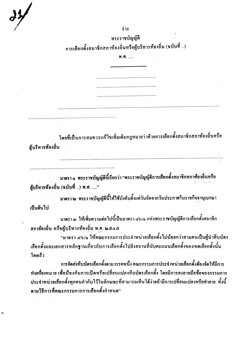 • ร่างพระราชบัญญัติการเลือกตั้งสมาชิกสภาท้องถิ่นหรือผู้บริหารท้องถิ่น (ฉบับที่..) พ.ศ.....