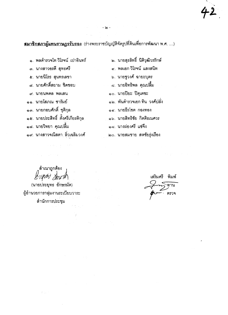 • ร่างพระราชบัญญัติจัดรูปที่ดินเพื่อการพัฒนา พ.ศ.... (นายณัฐวุฒิ ประเสริฐสุวรรณ และนายมณเฑียร สงฆ์ประชา เป็นผู้เสนอ)