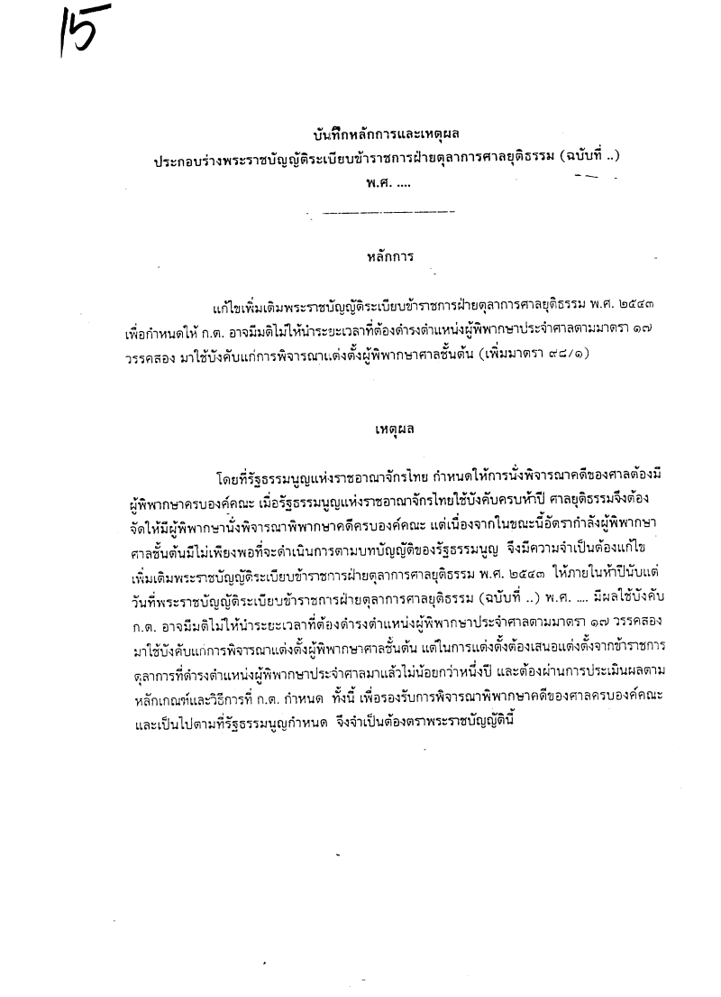 ร่างพระราชบัญญัติระเบียบข้าราชการฝ่ายตุลาการศาลยุติธรรม (ฉบับที่..) พ.ศ..... |
