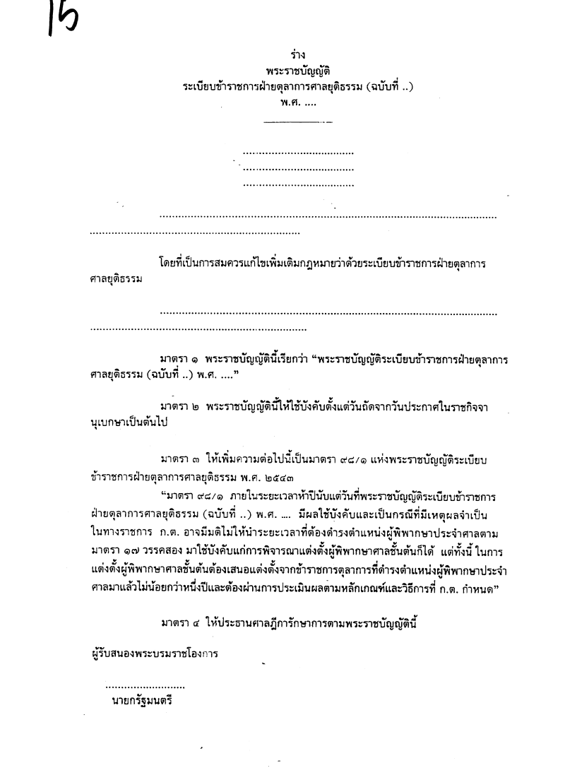 • ร่างพระราชบัญญัติระเบียบข้าราชการฝ่ายตุลาการศาลยุติธรรม (ฉบับที่..) พ.ศ.....