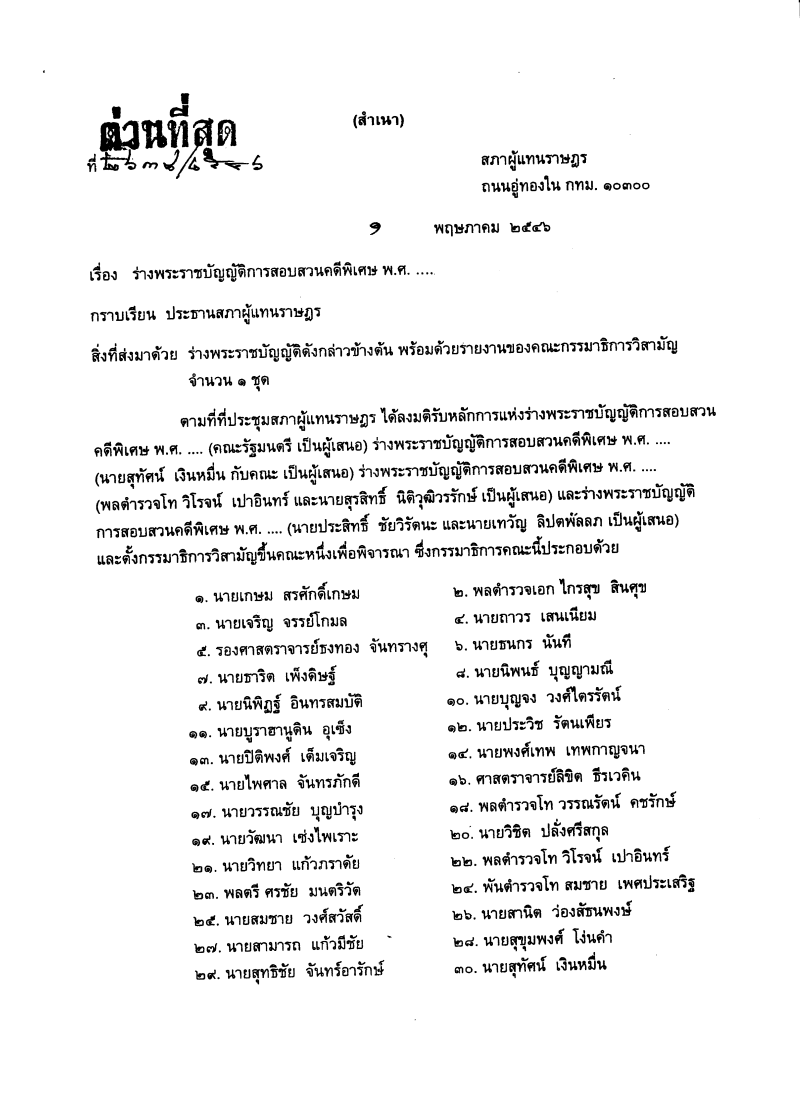 ร่างพระราชบัญญัติการสอบสวนคดีพิเศษ พ.ศ..... ซึ่งคณะกรรมาธิการวิสามัญพิจารณาเสร็จแล้ว