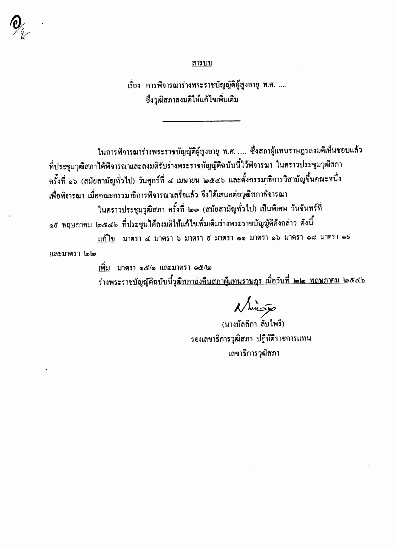 ชื่อเอกสาร :   ๑๔. พิจารณากรณีวุฒิสภาแก้ไขเพิ่มเติมร่างพระราชบัญญัติผู้สูงอายุ พ.ศ. .... ตามมาตรา ๑๗๕ ของรัฐธรรมนูญแห่งราชอาณาจักรไทย