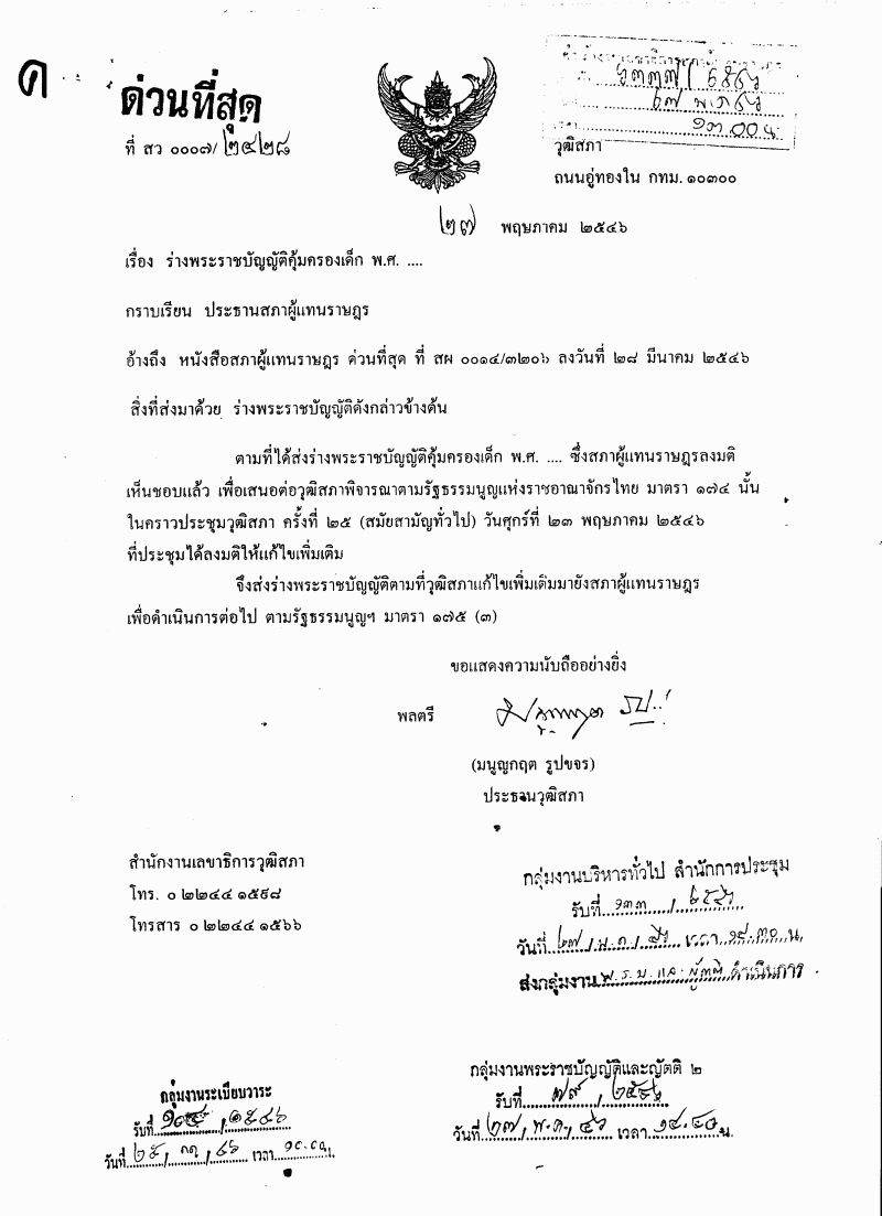 • ๑๖.พิจารณากรณีวุฒิสภาแก้ไขเพิ่มเติมร่างพระราชบัญญัติคุ้มครองเด็ก พ.ศ. .... ตามมาตรา ๑๗๕ ของรัฐธรรมนูญแห่งราชอาณาจักรไทย