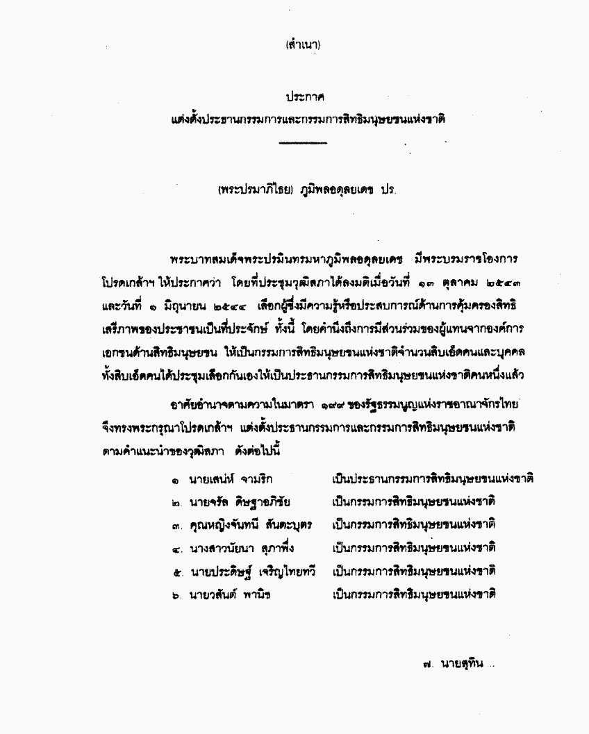 ประกาศ แต่งตั้งประธานกรรมการและกรรมการสิทธิมนุษยชนแห่งชาติ |