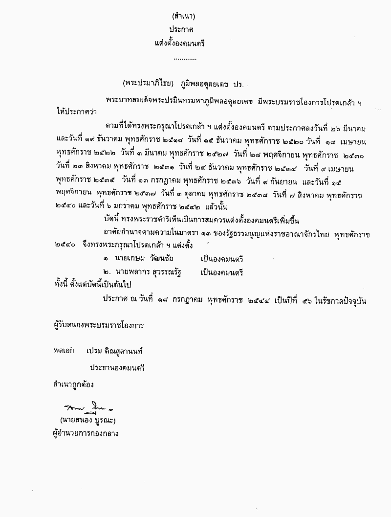 ชื่อเอกสาร : ๒.๓ รับทราบพระบรมราชโองการโปรดเกล้าฯ ประกาศแต่งตั้งองคมนตรี