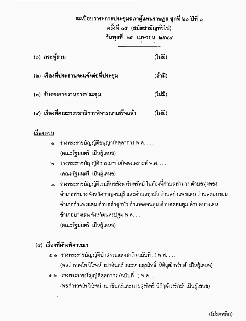 • ระเบียบวาระการประชุมสภาผู้แทนราษฎร > ชุดที่ 21 > ปีที่ 1 > สมัยสามัญทั่วไป > ครั้งที่ 15