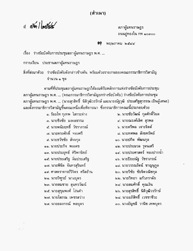 ร่างข้อบังคับการประชุมสภาผู้แทนราษฎร พ.ศ. ....ซึ่งคณะกรรมาธิการวิสามัญพิจารณาเสร็จแล้ว