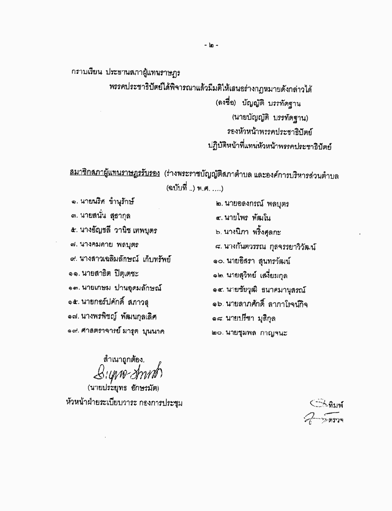 • ร่างพระราชบัญญัติสภาตำบลและองค์การบริหารส่วนตำบล (ฉบับที่ ..) พ.ศ. ....