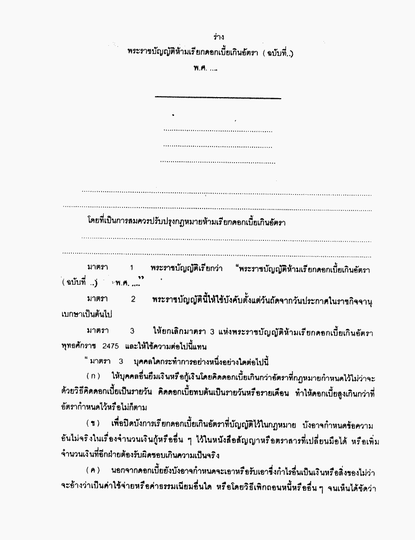 • ร่างพระราชบัญญัติห้ามเรียกดอกเบี้ยเกินอัตรา (ฉบับที่ ..) พ.ศ. ....
