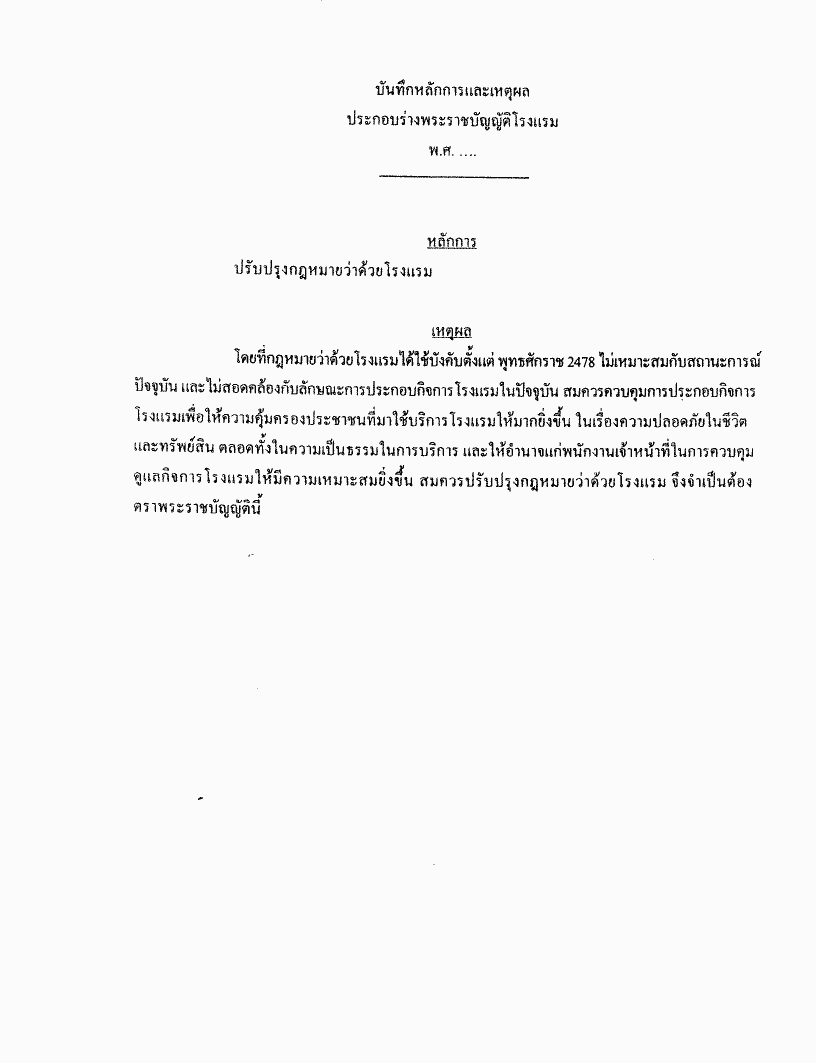 • ร่างพระราชบัญญัติโรงแรม พ.ศ. ....