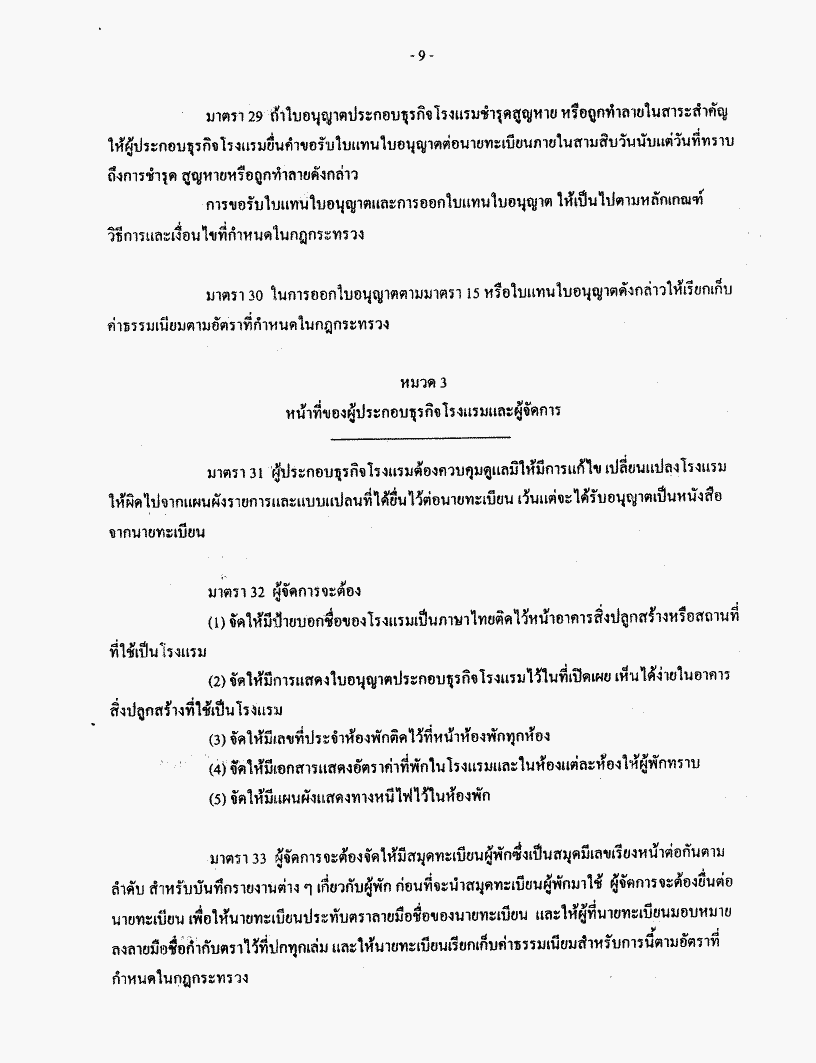 • ร่างพระราชบัญญัติโรงแรม พ.ศ. ....