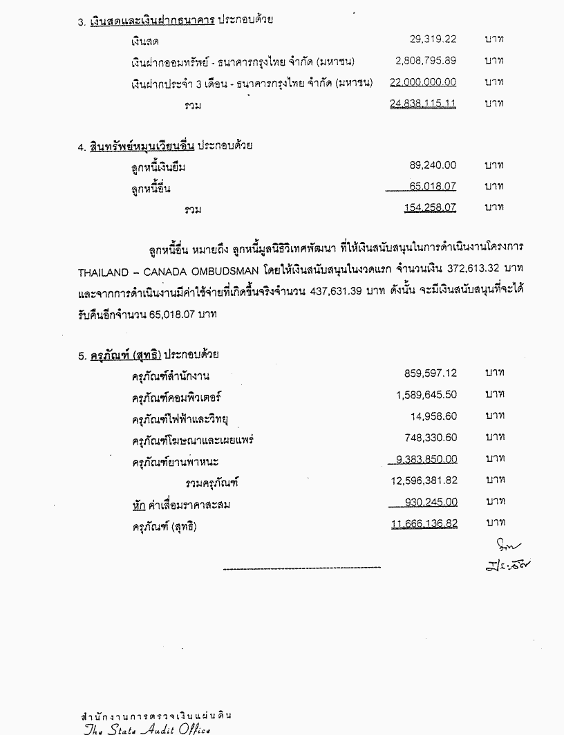 • งบการเงินสำหรับงวดตั้งแต่วันที่ 21 มีนาคม 2543 ถึงวันที่ 30 กันยายน 2543 ขอดำเนินสำนักงานผู้ตรวจการแผ่นดินของรัฐสภา