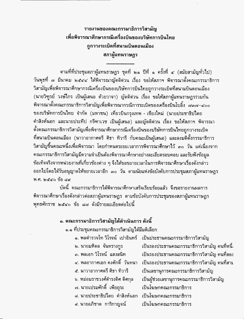 รายงานของคณะกรรมาธิการวิสามัญเพื่อพิจารณาศึกษากรณีเครื่องบินของบริษัทการบินไทยถูกวางระเบิดที่สนามบินดอนเมืองซึ่งคณะกรรมาธิการวิสามัญพิจารณาเสร็จแล้ว