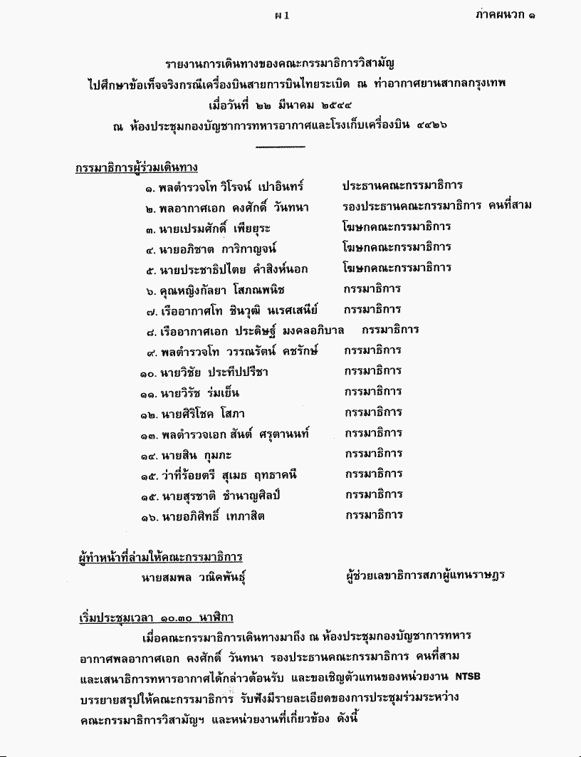 รายงานของคณะกรรมาธิการวิสามัญเพื่อพิจารณาศึกษากรณีเครื่องบินของบริษัทการบินไทยถูกวางระเบิดที่สนามบินดอนเมืองซึ่งคณะกรรมาธิการวิสามัญพิจารณาเสร็จแล้ว