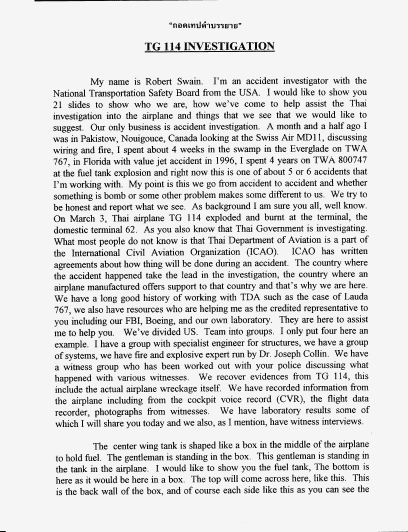 รายงานของคณะกรรมาธิการวิสามัญเพื่อพิจารณาศึกษากรณีเครื่องบินของบริษัทการบินไทยถูกวางระเบิดที่สนามบินดอนเมืองซึ่งคณะกรรมาธิการวิสามัญพิจารณาเสร็จแล้ว