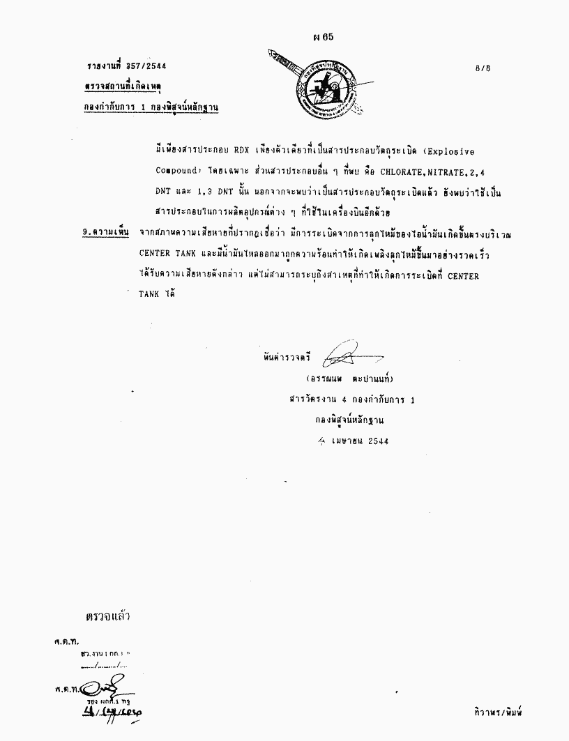 รายงานของคณะกรรมาธิการวิสามัญเพื่อพิจารณาศึกษากรณีเครื่องบินของบริษัทการบินไทยถูกวางระเบิดที่สนามบินดอนเมืองซึ่งคณะกรรมาธิการวิสามัญพิจารณาเสร็จแล้ว