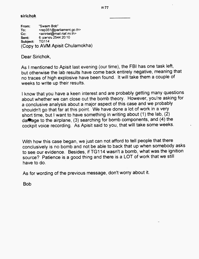 รายงานของคณะกรรมาธิการวิสามัญเพื่อพิจารณาศึกษากรณีเครื่องบินของบริษัทการบินไทยถูกวางระเบิดที่สนามบินดอนเมืองซึ่งคณะกรรมาธิการวิสามัญพิจารณาเสร็จแล้ว