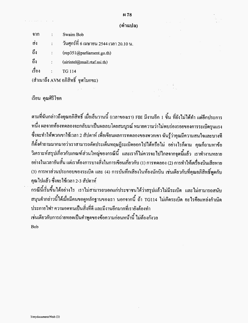 รายงานของคณะกรรมาธิการวิสามัญเพื่อพิจารณาศึกษากรณีเครื่องบินของบริษัทการบินไทยถูกวางระเบิดที่สนามบินดอนเมืองซึ่งคณะกรรมาธิการวิสามัญพิจารณาเสร็จแล้ว