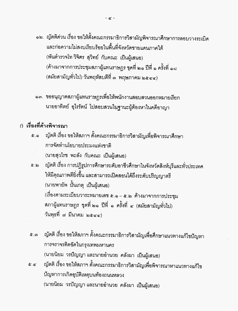 • (ฉบับปรับปรุง) ระเบียบวาระการประชุมสภาผู้แทนราษฎร ชุดที่ 21 ปีที่ 1 ครั้งที่ 20 (สมัยสามัญทั่วไป) วันพฤหัสบดีที่ 10 พฤษภาคม 2544
