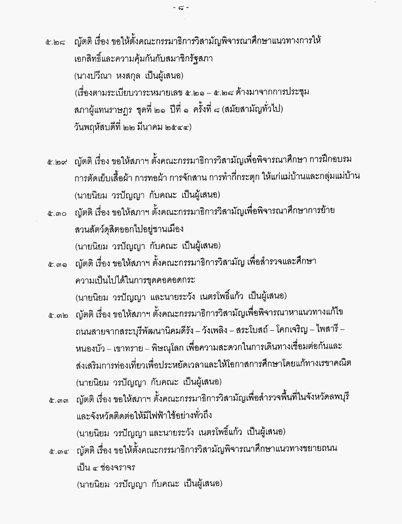 (ฉบับปรับปรุง) ระเบียบวาระการประชุมสภาผู้แทนราษฎร ชุดที่ 21 ปีที่ 1 ครั้งที่ 20 (สมัยสามัญทั่วไป) วันพฤหัสบดีที่ 10 พฤษภาคม 2544 |