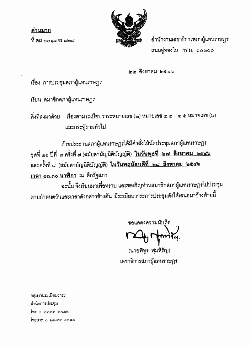 • ระเบียบวาระการประชุมสภาผู้แทนราษฎร > ชุดที่ 21 > ปีที่ 3 > สมัยสามัญนิติบัญญัติ > ครั้งที่ 7