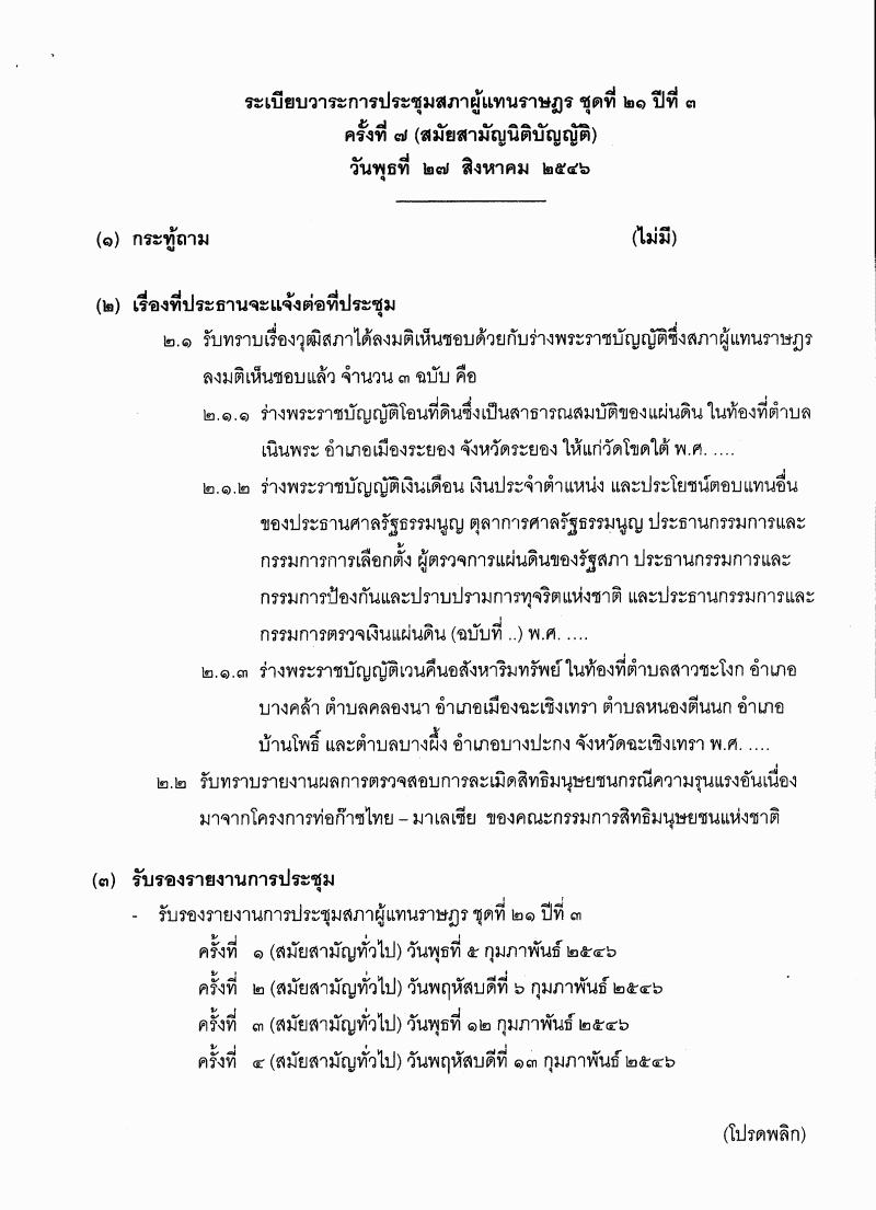 • ระเบียบวาระการประชุมสภาผู้แทนราษฎร > ชุดที่ 21 > ปีที่ 3 > สมัยสามัญนิติบัญญัติ > ครั้งที่ 7