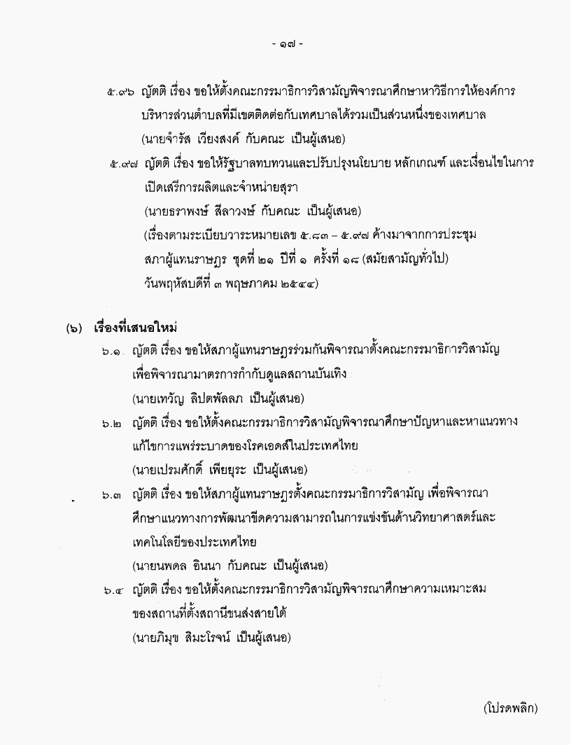 ระเบียบวาระการประชุมสภาผู้แทนราษฎร > ชุดที่ 21 > ปีที่ 1 > สมัยสามัญทั่วไป > ครั้งที่ 20