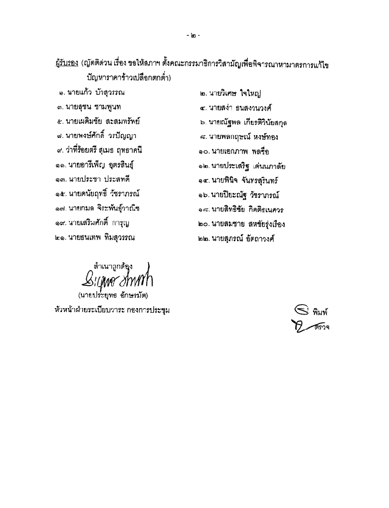 ขอเสนอญัตติด่วน เรื่อง ขอให้สภาฯ ตั้งคณะกรรมาธิการวิสามัญเพื่อพิจารณาหามาตรการแก้ไขปัญหาราคาข้าวเปลือกตกต่ำ |