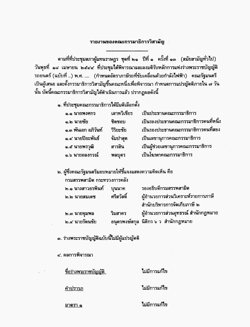 • ร่างพระราชบัญญัติรถยนตร์ (ฉบับที่ ..) พ.ศ. .... (กำหนดอัตราภาษีรถที่ขับเคลื่อนด้วยกำลังไฟฟ้า)