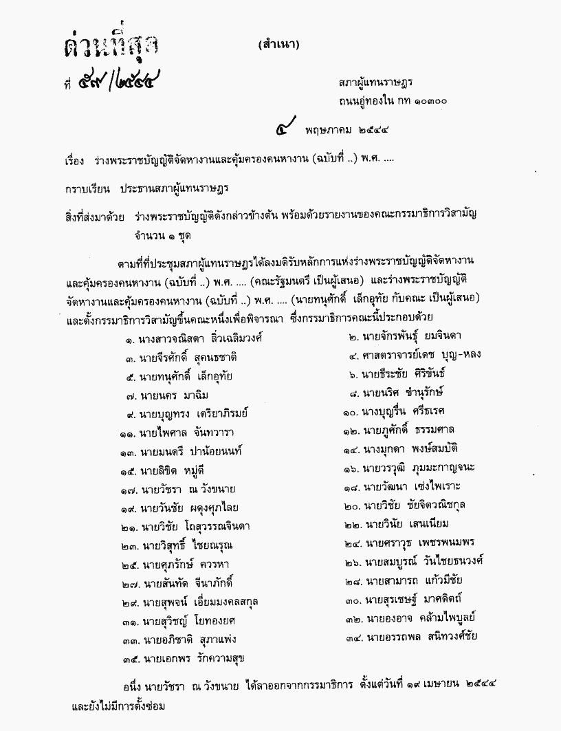 • ร่างพระราชบัญญัติจัดหางานและคุ้มครองคนหางาน (ฉบับที่..) พ.ศ. .... ซึ่งคณะกรรมาธิการพิจารณาเสร็จแล้ว