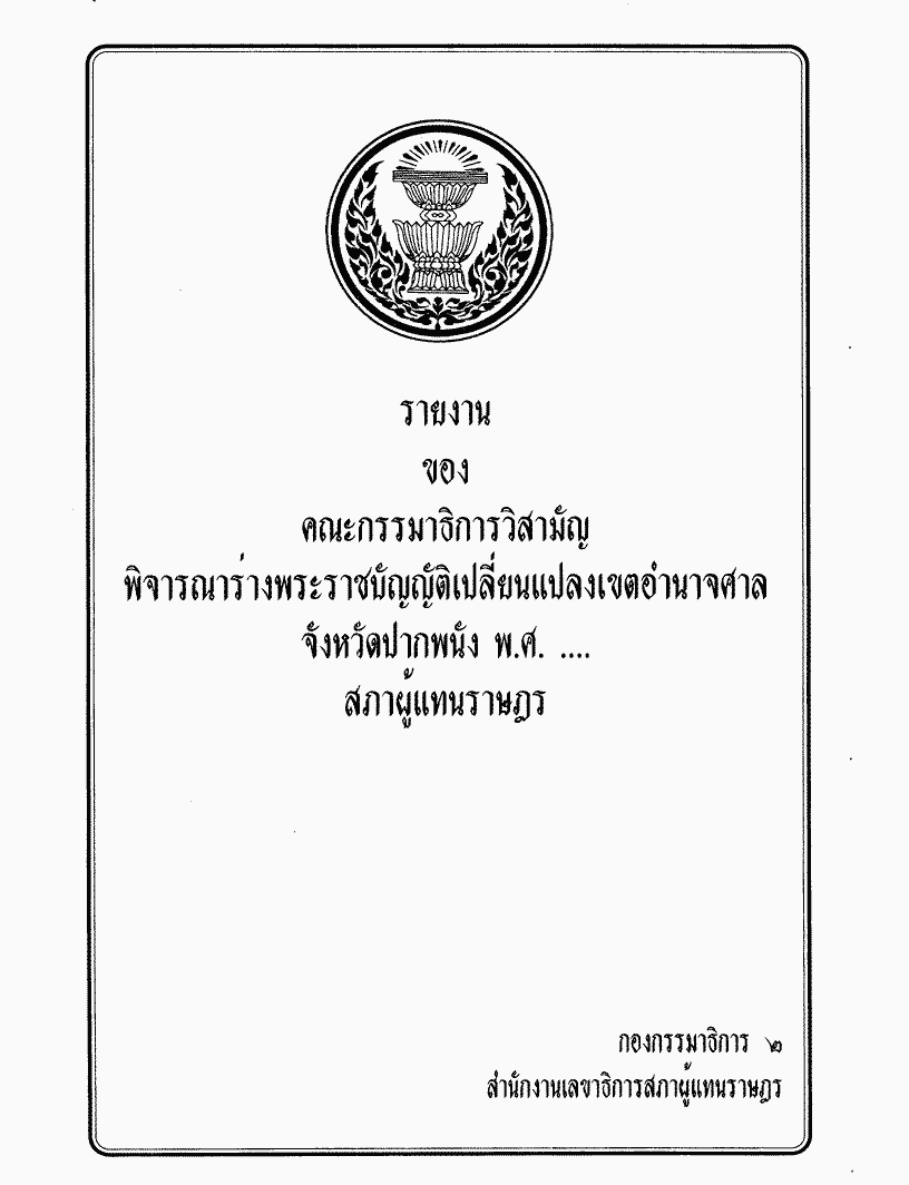 • ร่างพระราชบัญญัติเปลี่ยนแปลงเขตอำนาจศาลจังหวัดปากพนัง พ.ศ. ....