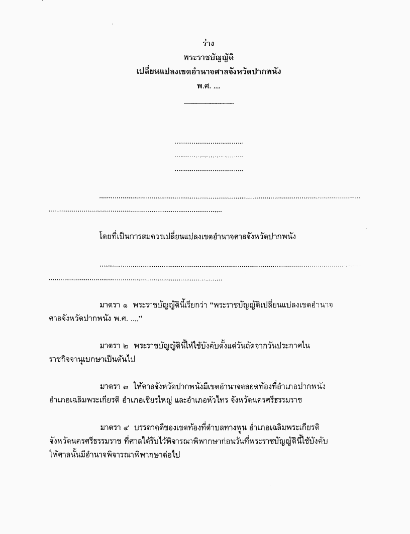 ร่างพระราชบัญญัติเปลี่ยนแปลงเขตอำนาจศาลจังหวัดปากพนัง พ.ศ. .... |