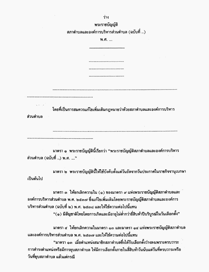 • ร่างพระราชบัญญัติสภาตำบลและองค์การบริหารส่วนตำบล (ฉบับที่ ..) พ.ศ. ....
