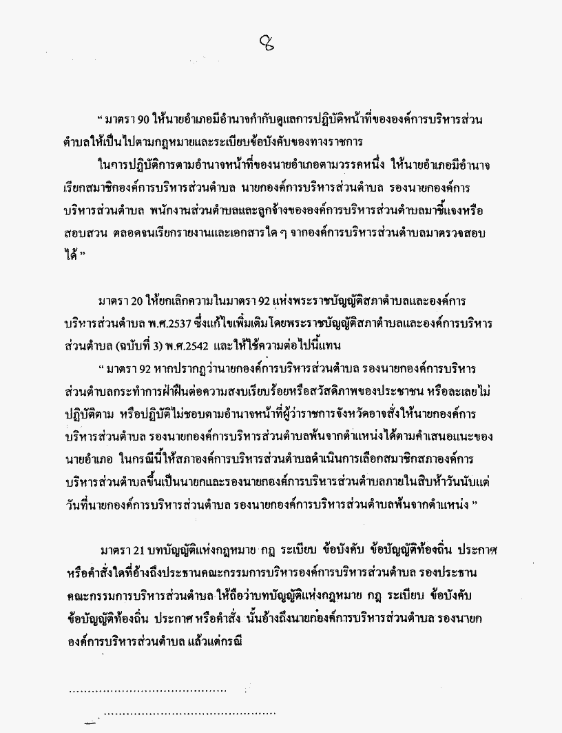ชื่อเอกสาร :   ร่างพระราชบัญญัติสภาตำบลและองค์การบริหารส่วนตำบล (ฉบับที่ ..) พ.ศ. .... (นายอำนวย คลังผา และนายจาตุรงค์ เพ็งนรพัฒน์ เป็นผู้เสนอ)