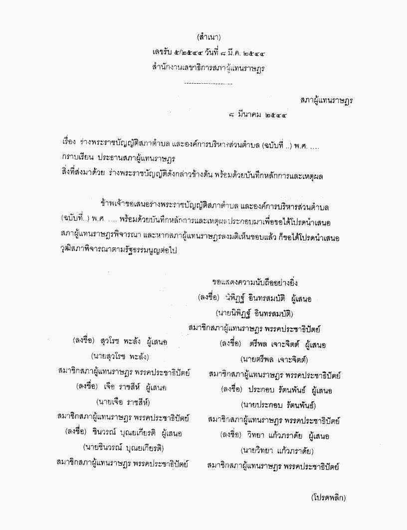 • ร่างพระรารบัญญัติสภาตำบลและองค์การบริหารส่วนตำบล (ฉบับที่ ..) พ.ศ. .... (นายพิพิฏฐ์ อินทรสมบัติ กับคณะ เป็นผู้เสนอ)