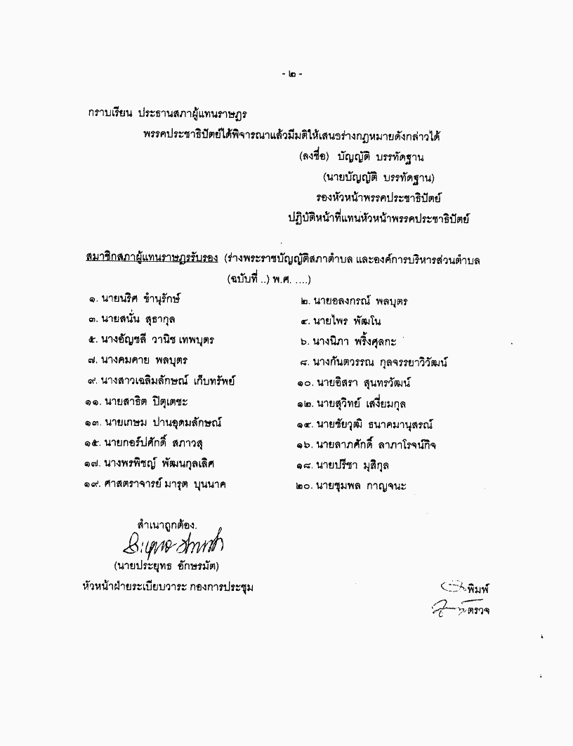 • ร่างพระรารบัญญัติสภาตำบลและองค์การบริหารส่วนตำบล (ฉบับที่ ..) พ.ศ. ....