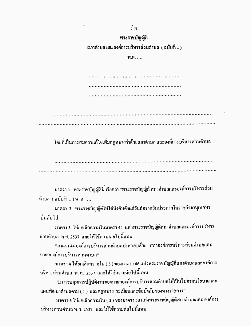 • ร่างพระรารบัญญัติสภาตำบลและองค์การบริหารส่วนตำบล (ฉบับที่ ..) พ.ศ. ....