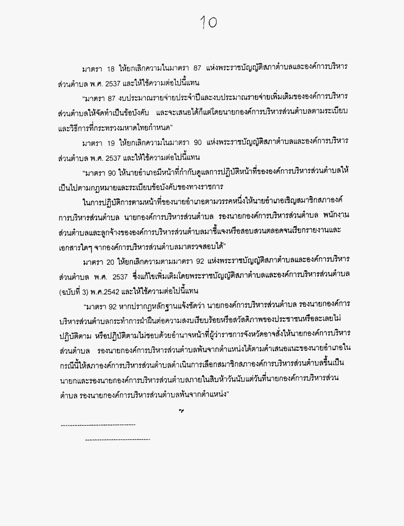 ชื่อเอกสาร :   ร่างพระราชบัญญัติสภาตำบลและองค์การบริหารส่วนตำบล (ฉบับที่ ..) พ.ศ. ..... (นายประชาธิปไตย คำสิงห์นอก เป็นผู้เสนอ) (เรื่องตามระเบียบวาระเรื่องด่วนที่ 4 - 7 เป็นเรื่องที่คณะรัฐมนตรีขอรับไปพิจารณาก่อนรับหลักการ กำหนดเวลา 60 วัน)