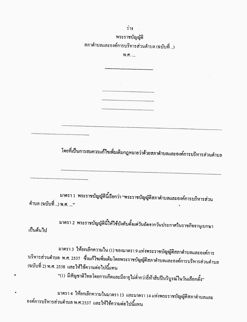 ชื่อเอกสาร :   ร่างพระราชบัญญัติสภาตำบลและองค์การบริหารส่วนตำบล (ฉบับที่ ..) พ.ศ. ....