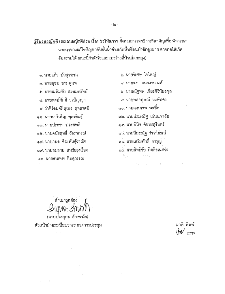 ขอเสนอญัตติด่วน เรื่อง ขอให้สภาฯ ตั้งคณะกรรมาธิการวิสามัญเพื่อพิจารณาหาแนวทางแก้ไขปัญหาคันกั้นน้ำอ่างเก็บน้ำเขื่อนป่าสักสูงมาก อาจก่อให้เกิดอันตรายได้ ขณะนี้กำลังรั่วและแบะร้าวที่บ้านโคกสลุง |