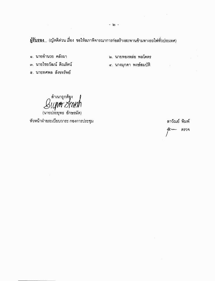 ขอเสนอญัตติด่วน เรื่อง ขอให้สภาพิจารณาการก่อสร้างสะพานข้ามทางรถไฟทั่วประเทศ |