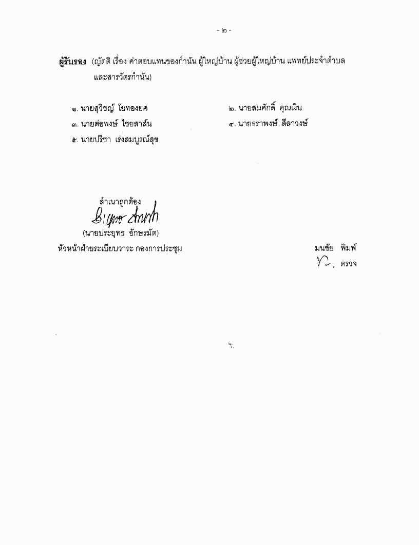 • ขอเสนอญัตติเรื่อง ค่าตอบแทนของกำนัน ผู้ใหญ่บ้าน ผู้ช่วยผู้ใหญ่บ้าน แพทย์ประจำตำบลและสารวัตรกำนัน
