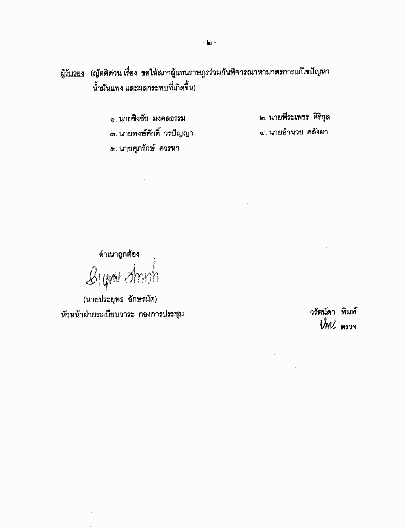 ขอเสนอญัตติด่วน เรื่อง ขอให้สภาผู้แทนราษฎรร่วมกันพิจารณาหามาตรการแก้ไขปัญหาน้ำมันแพง และผลกระทบที่เกิดขึ้น |