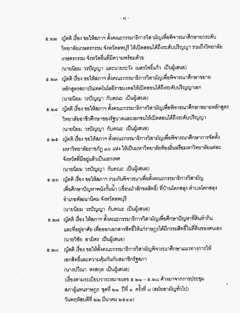 • ระเบียบวาระการประชุมสภาผู้แทนราษฎร > ชุดที่ 21 > ปีที่ 1 > สมัยสามัญทั่วไป > ครั้งที่ 22