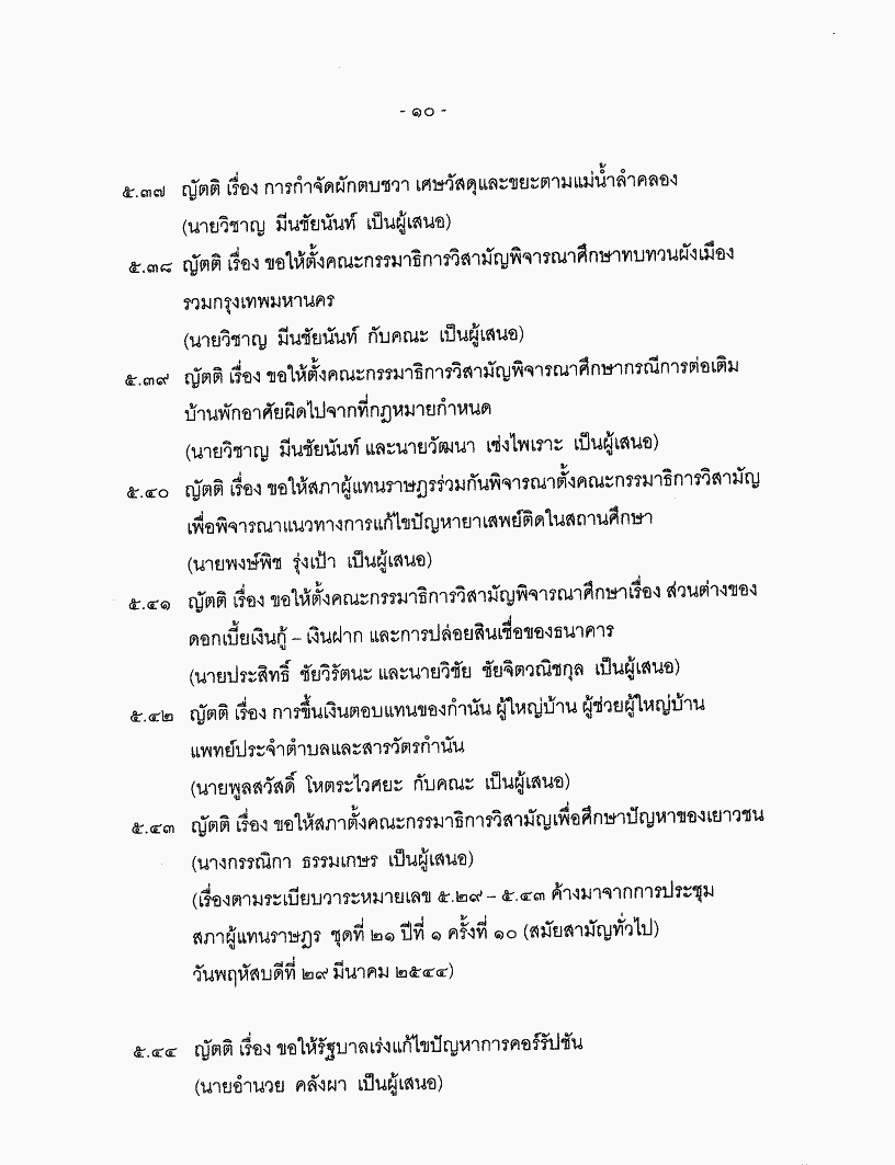 • ระเบียบวาระการประชุมสภาผู้แทนราษฎร ชุดที่ 21 ปีที่ 1 ครั้งที่ 22 (สมัยสามัญทัวไป) วันพฤหัสบดีที่ 24 พฤษภาคม 2544